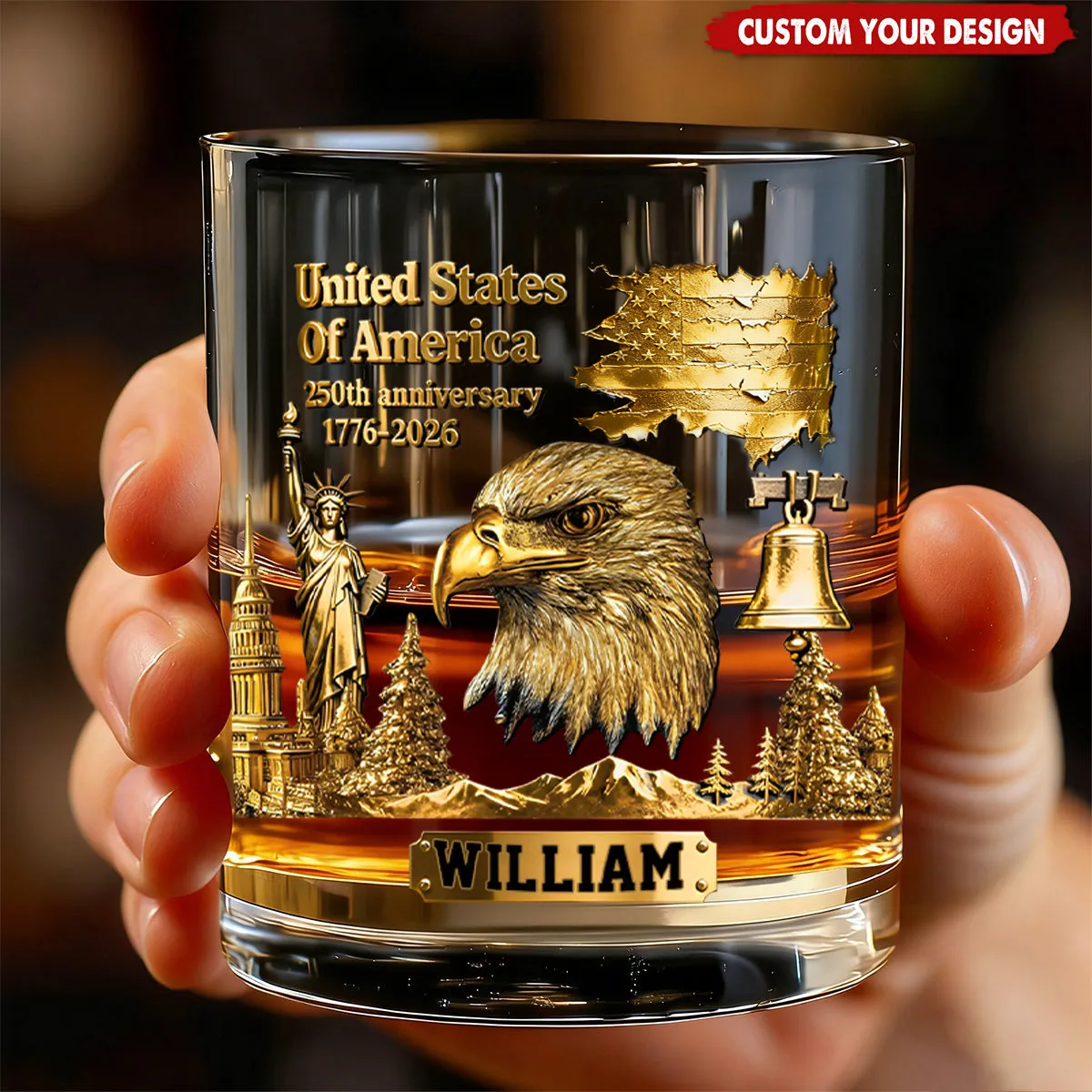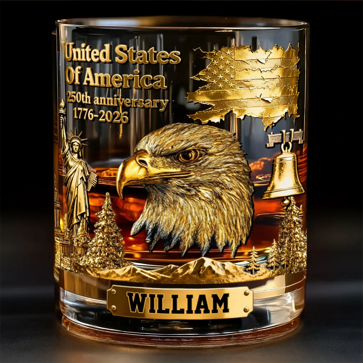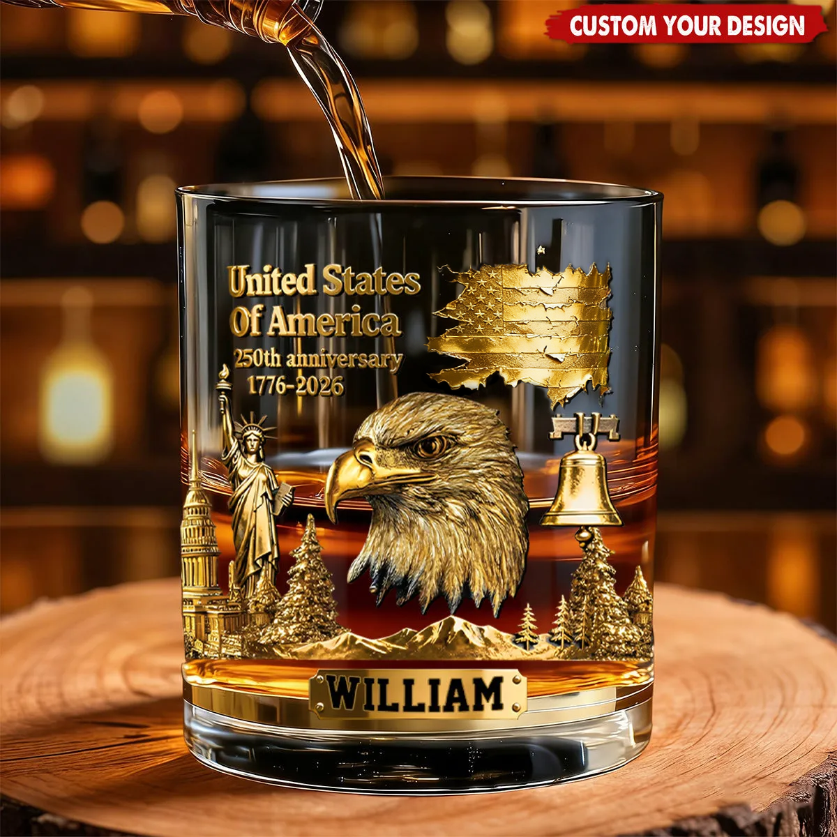 250th Anniversary - Personalized Bald Eagle Whiskey Glass