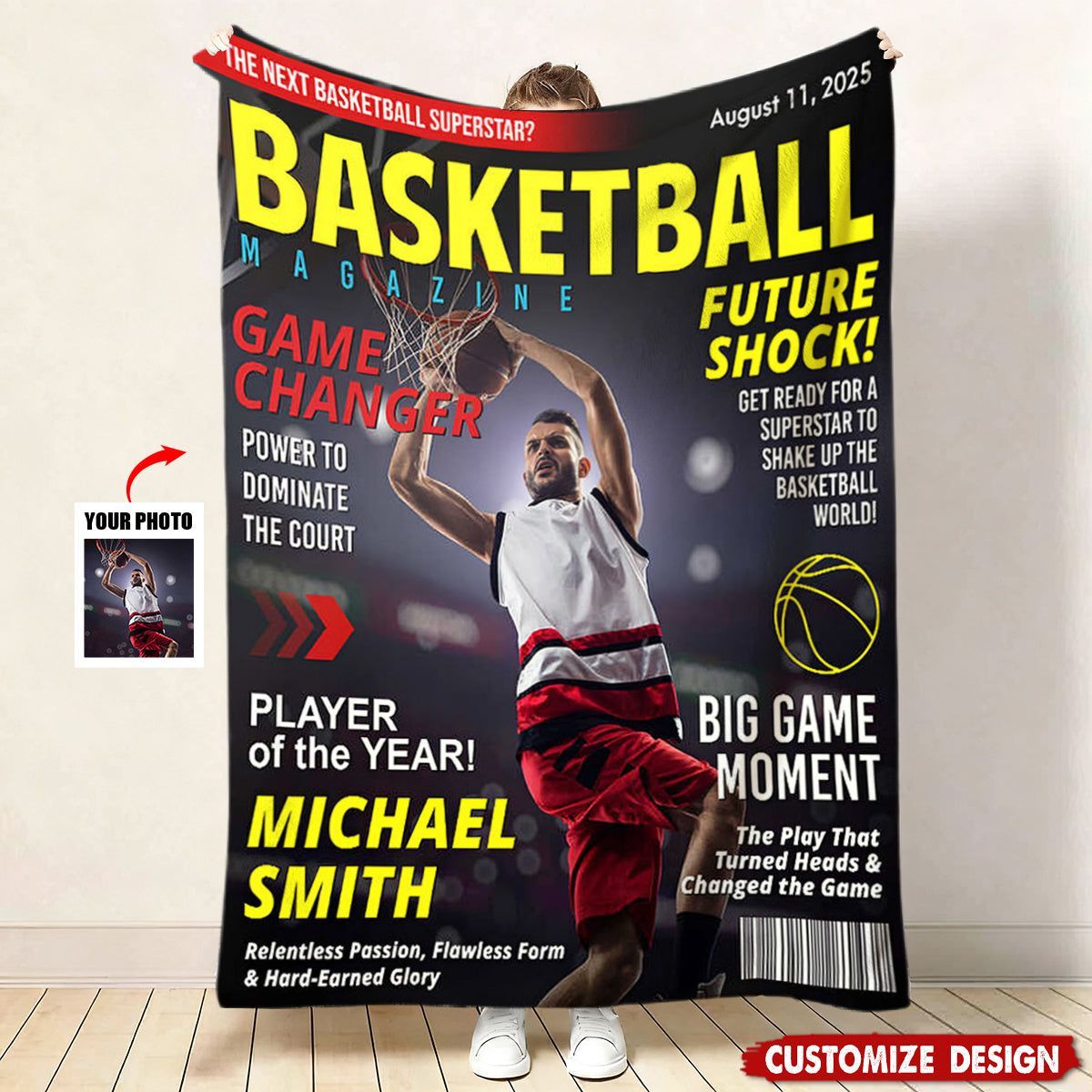 Personalized Basketball Magazine Cover Blanket - Basketball Lovers Gift