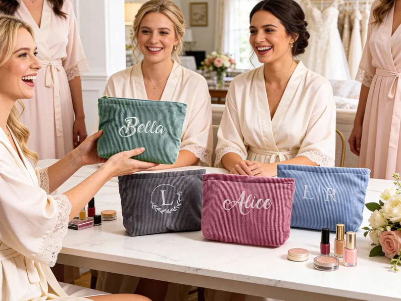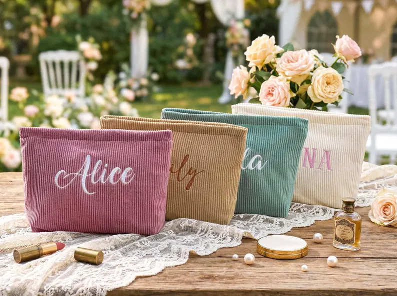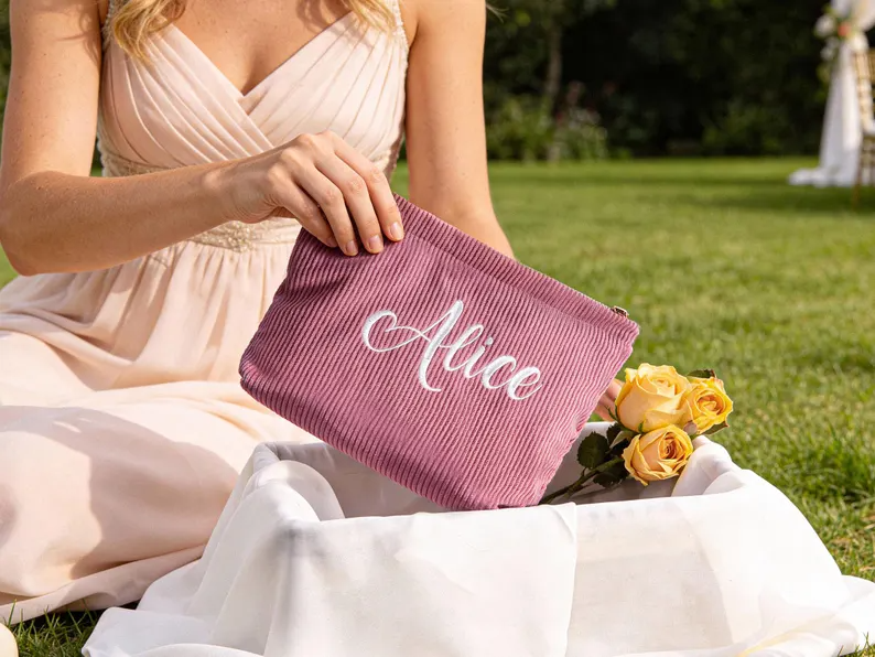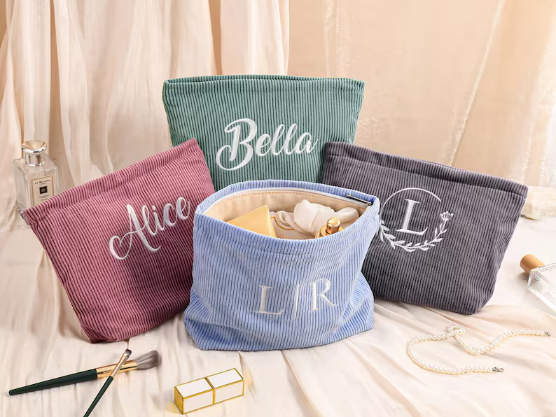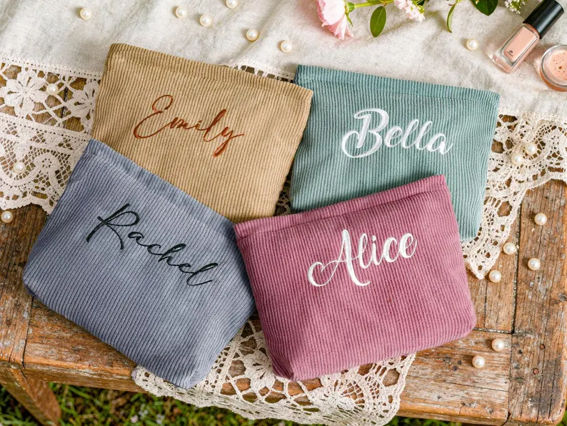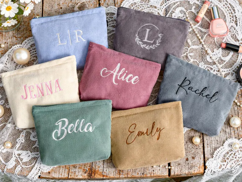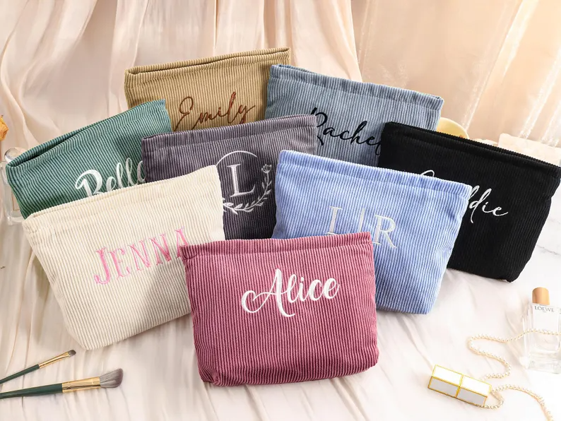 Personalized Corduroy Makeup Bag, Bridesmaid makeup Gift Bag, Makeup bag, Embroidered Cosmetic Bag, Gift for Women, Wedding Party Gifts Bag