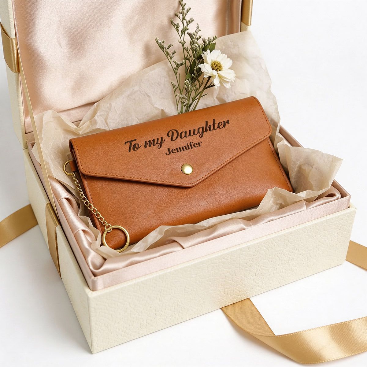 My Little Girl Yesterday, My Friend Today, My Daughter Forever - Personalized Leather Envelope Wallet