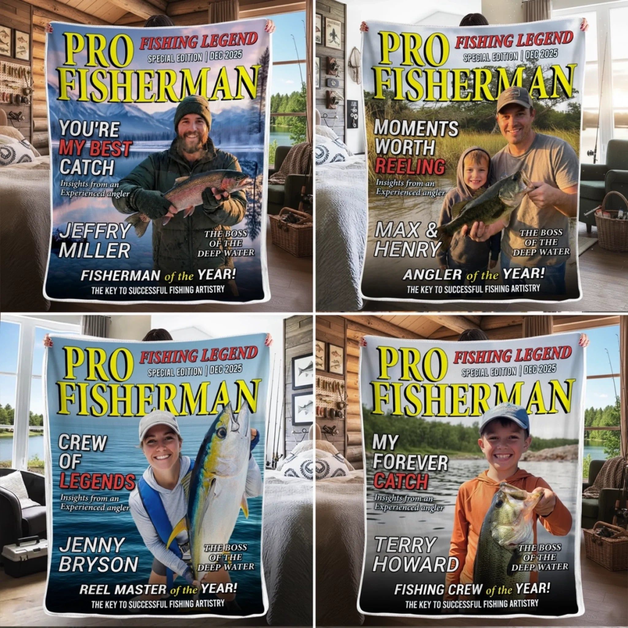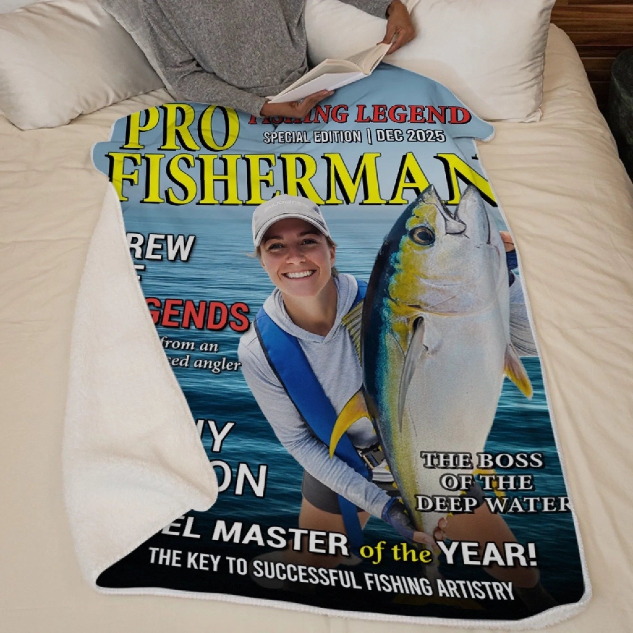 Custom Photo Magazine Blanket - Personalized Christmas Birthday Fishing Gifts For Fisherman - Masters Of The Deep