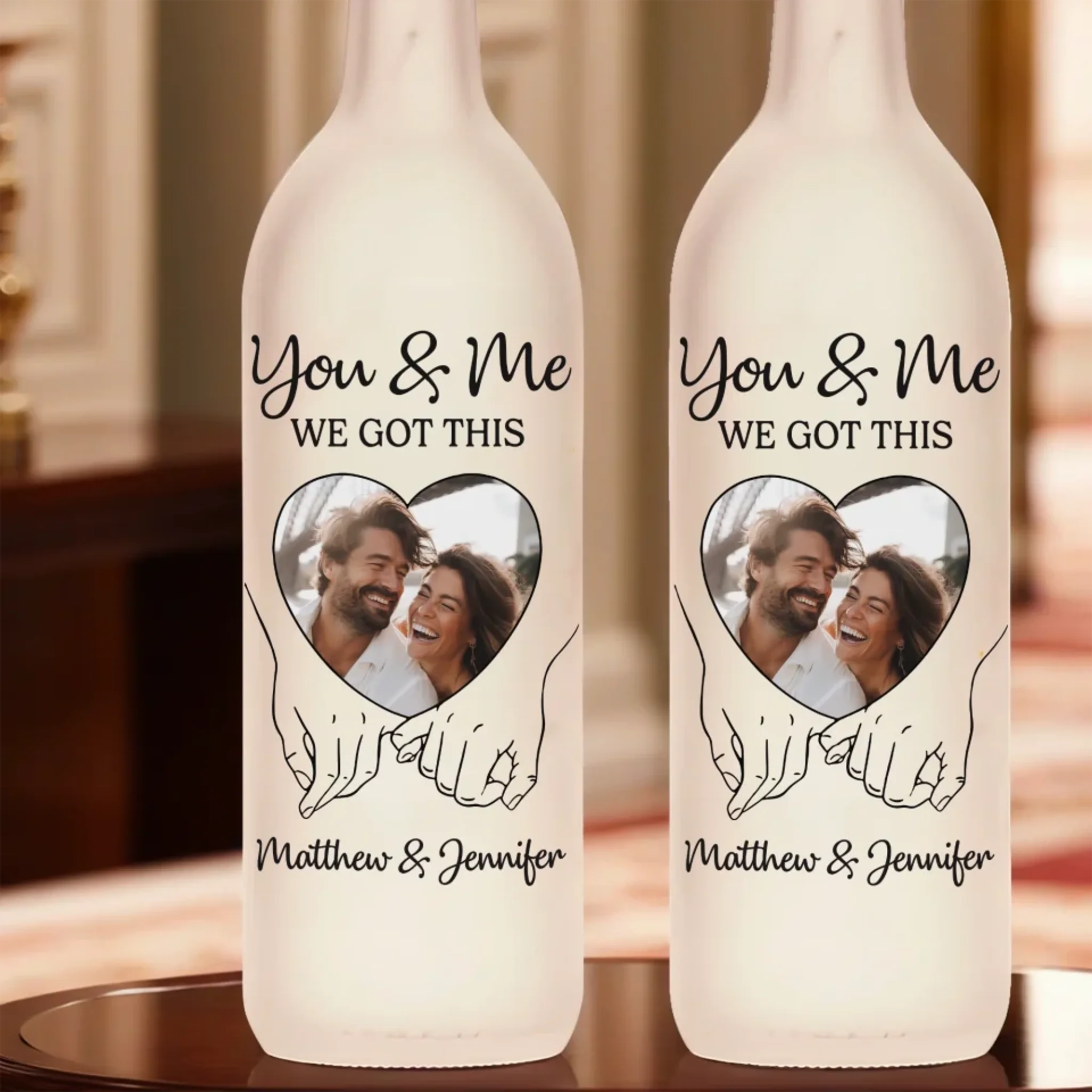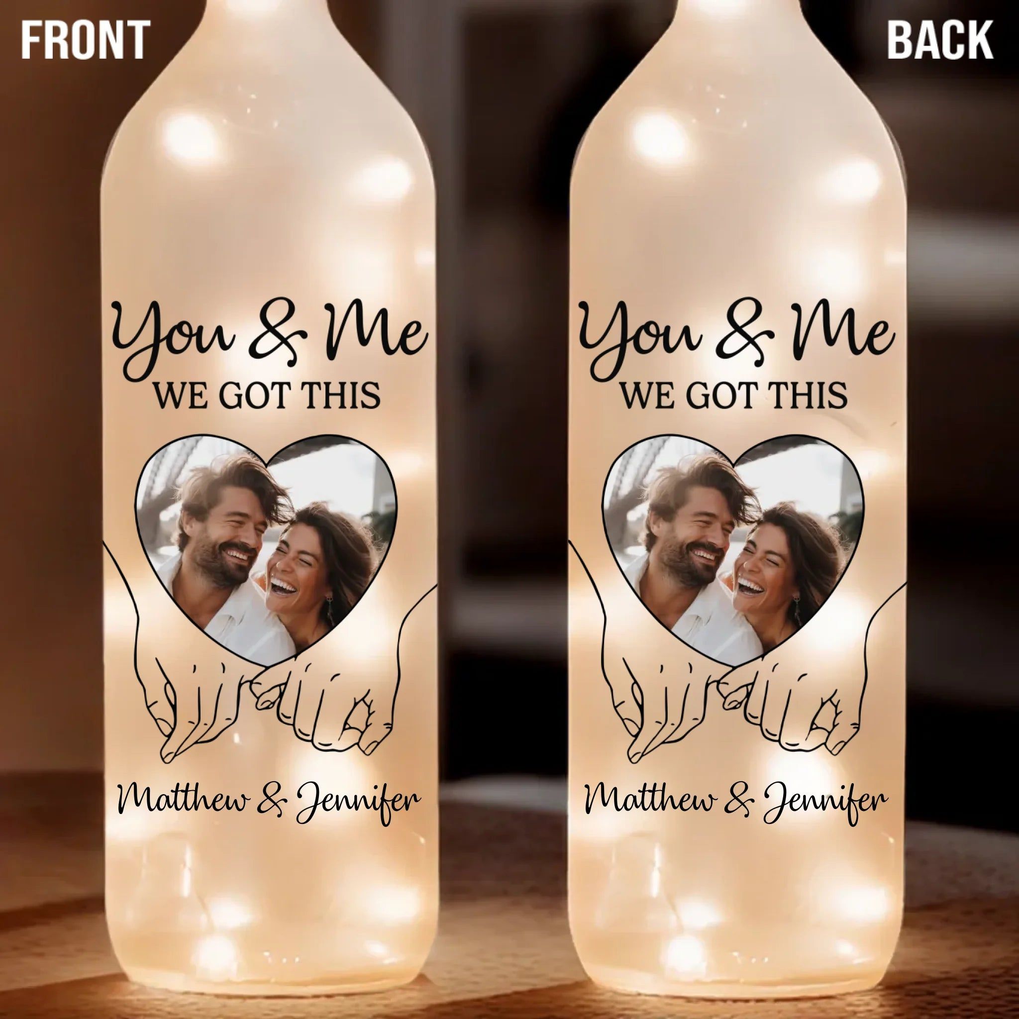 Custom Photo Bottle Lamp - Personalized Anniversary Wedding Gifts For Husband And Wife, Him And Her - Hand In Hand, We Conquer All