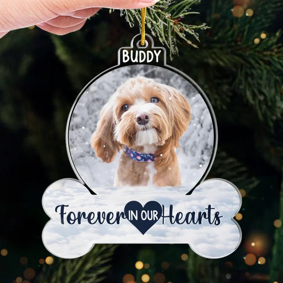 Custom Photo No Longer By Our Side But Forever In Our Hearts - Memorial Personalized Custom Ornament - Acrylic Custom Shaped - Sympathy Gift, Christmas Gift For Pet Owners, Pet Lovers