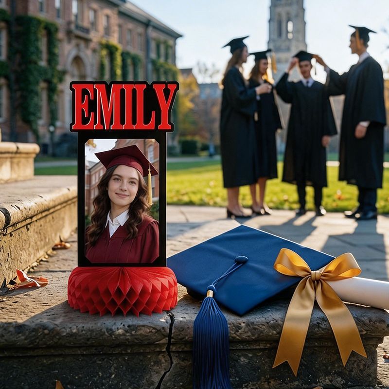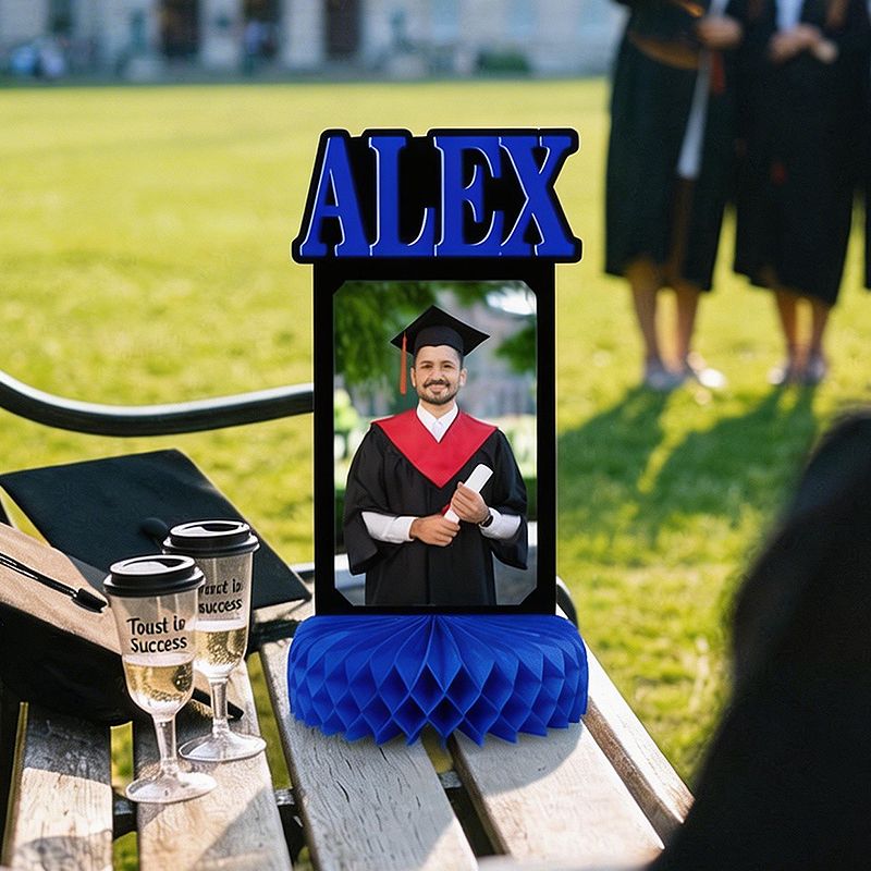 Make your graduation day even more special with this customizable graduation photo frame! Perfect for graduation ceremonies and family parties, this frame lets you showcase your best graduation moment while adding a personal touch with your name at the top. Designed to be a unique keepsake, it also serves as an eye-catching decoration for your celebration.