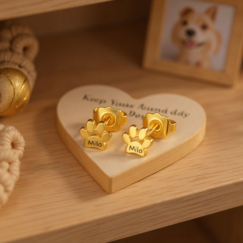 Personalized paw print engraved earrings – a keepsake for animal lovers.