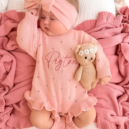 Personalized Embroidered Knitted Baby Romper