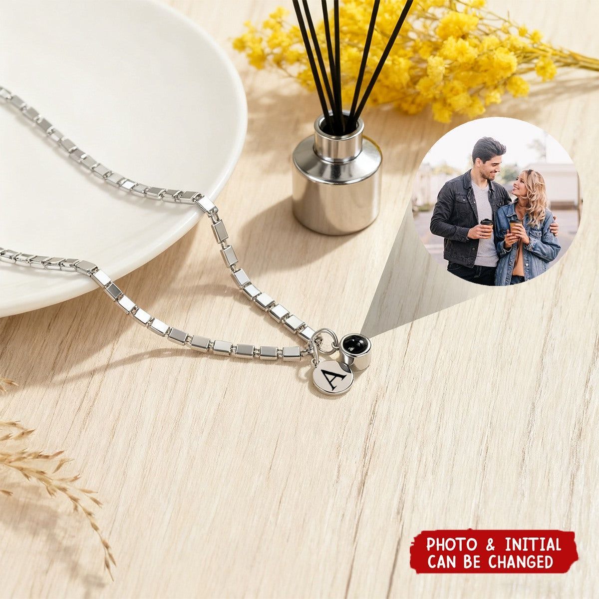 Personalized Engraved Initial Disc Photo Projection Necklace - Birthday Anniversary Gift for Women
