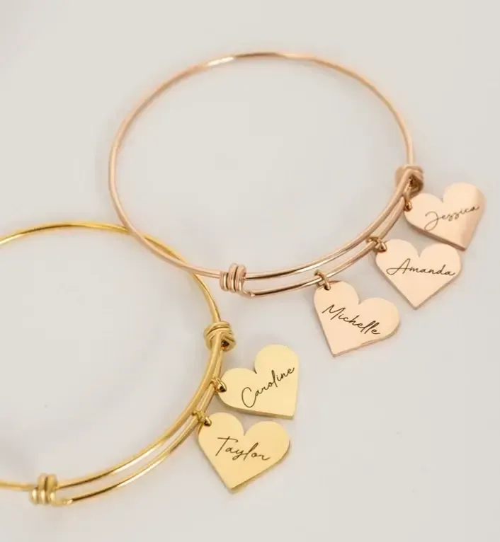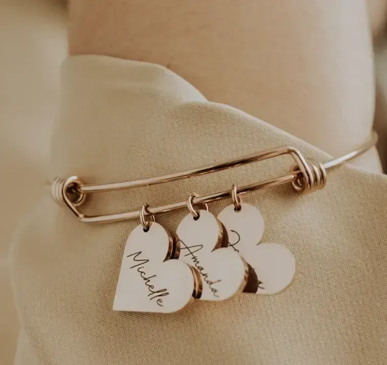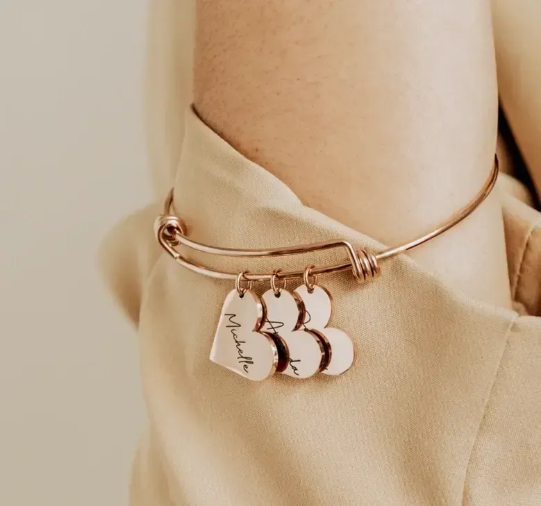 Personalized heart-shaped pendant bracelet, a gift for mom.