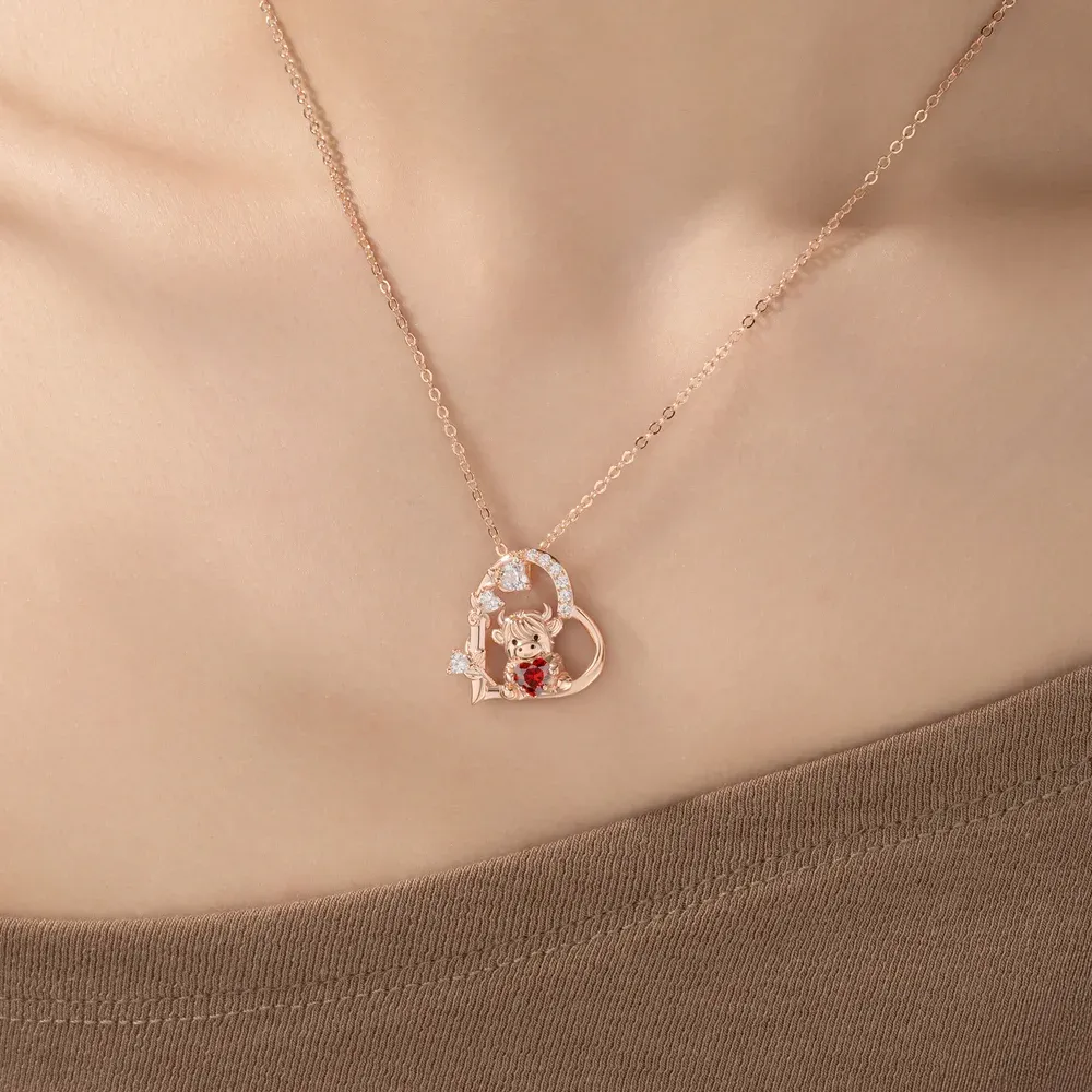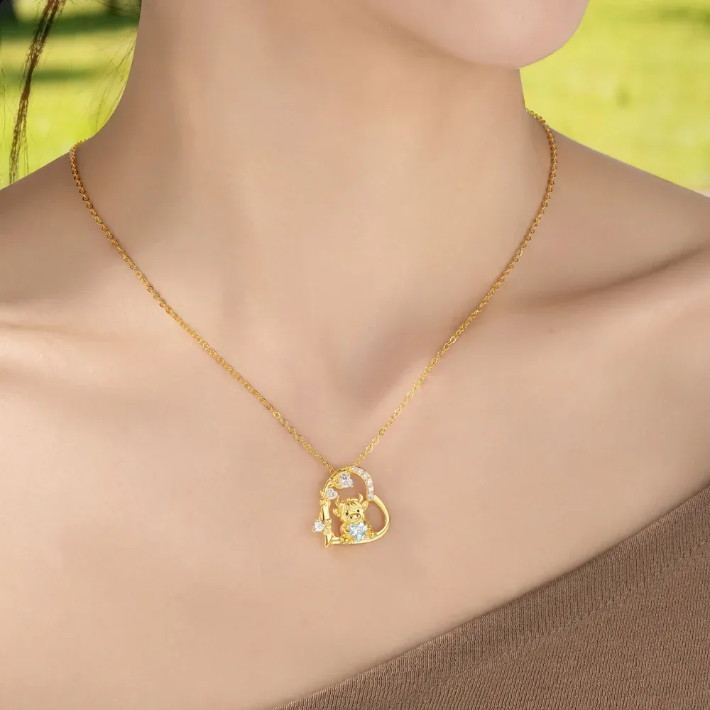Personalized Highland Cow Heart Birthstone Necklace Dainty Jewelry Birthday Anniversary Valentine's Day Gift for Women Highland Cow Lovers