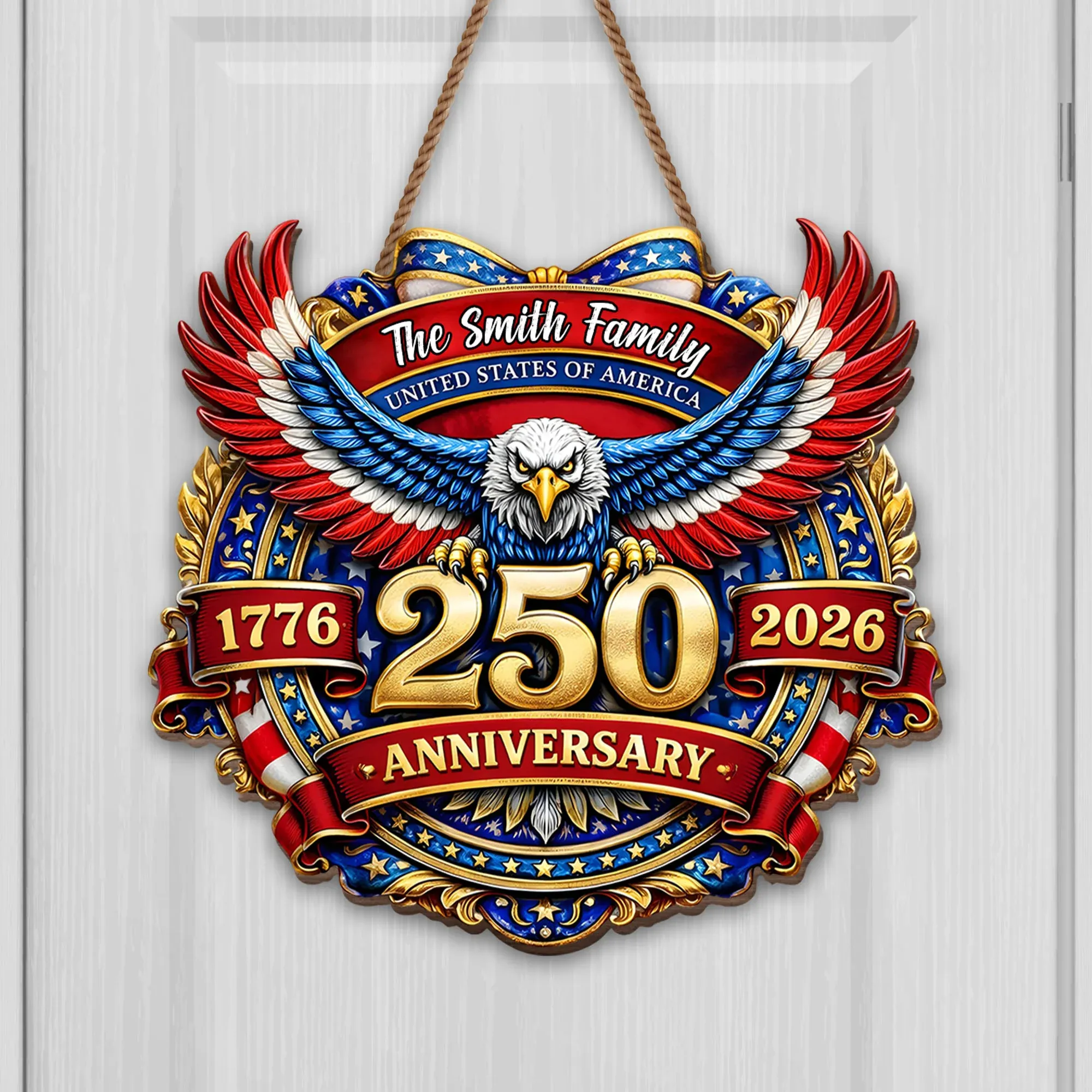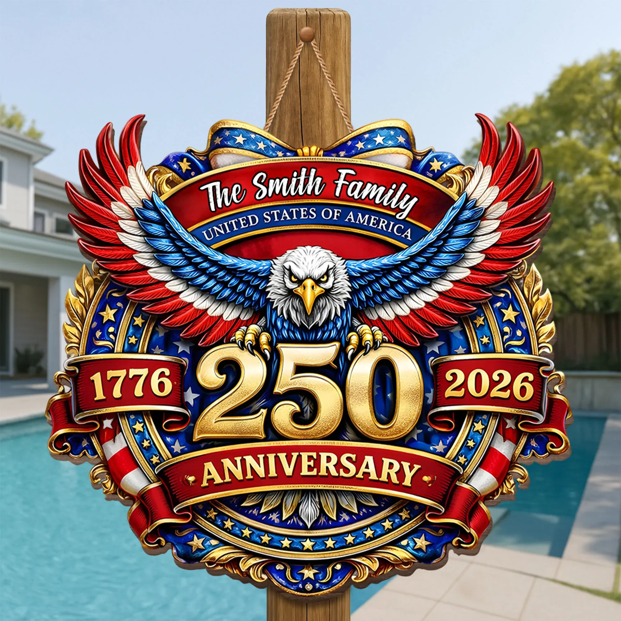 USA 250 Anniversary Wood Sign, Personalized Gift For Family and Patriots
